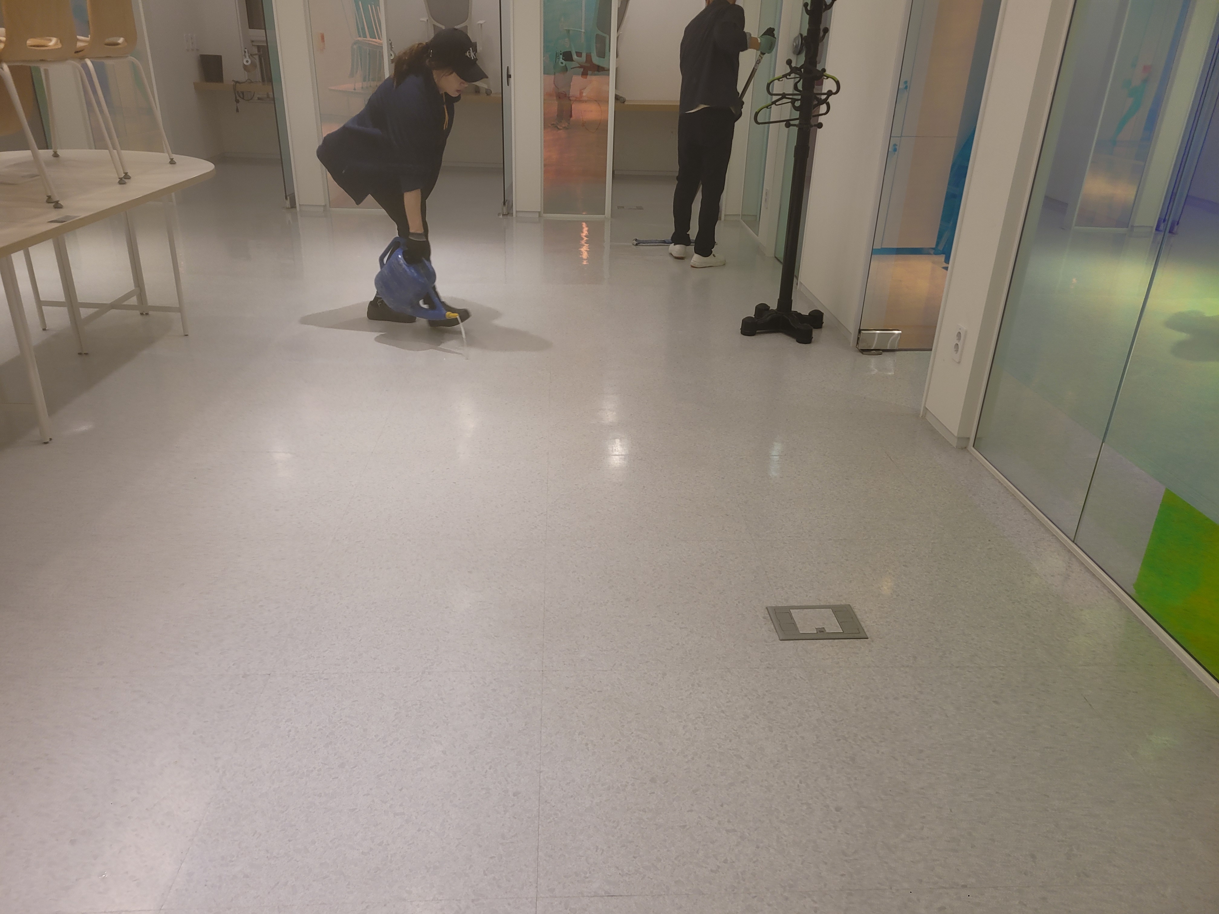그리고 나머지 한개층의 데코타일청소와 코팅 작업을 진행 합니다.